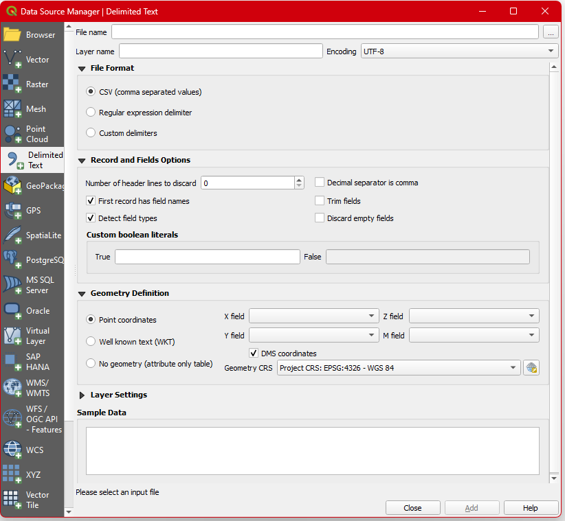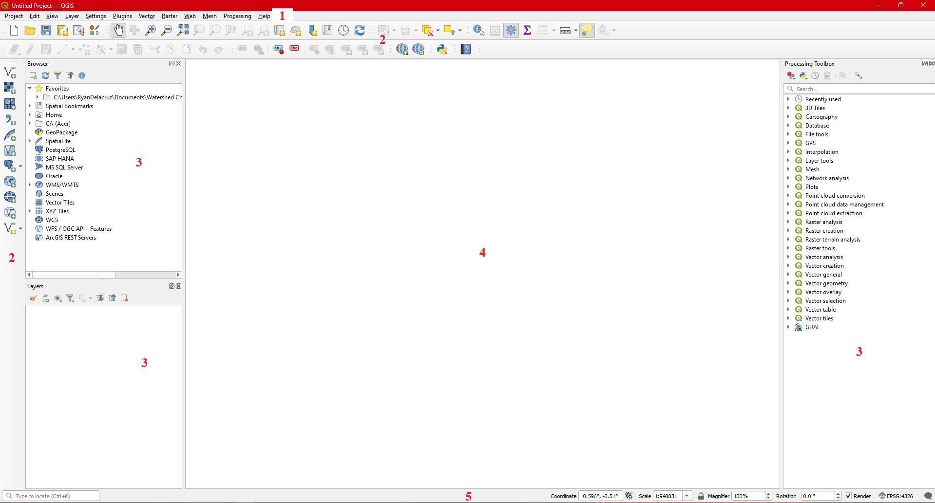 Step 1. Set the project CRS to ESPS:4326-WGS84 . Click