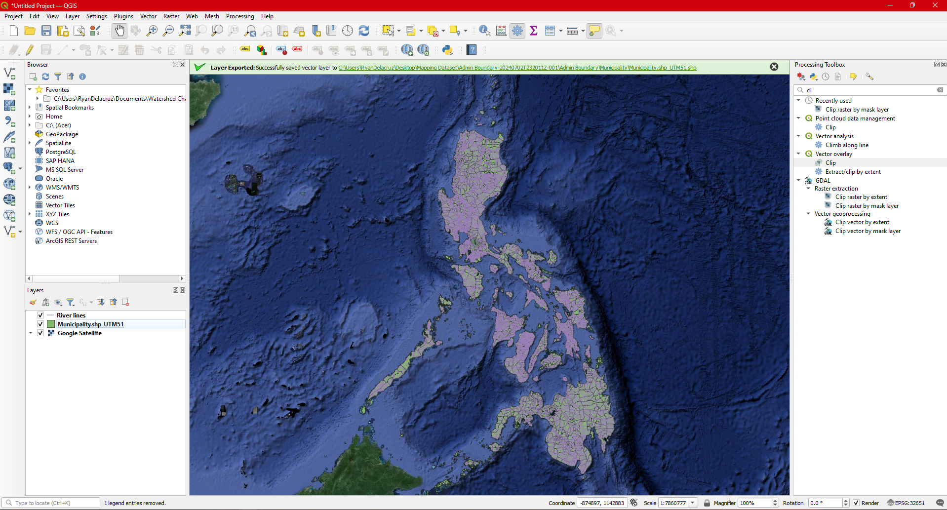 Step 13. Remove the Municipality.shp_UTM51N since we no longer need it for the succeeding steps.