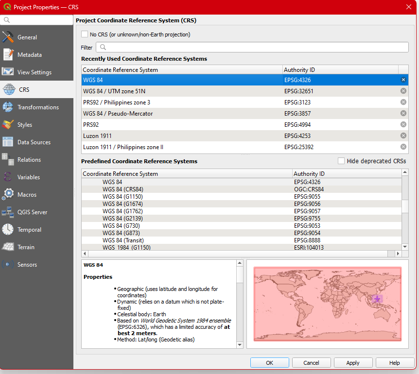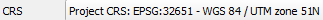 Step 2. After opening your QGIS Software, and after checking the geotaggedphoto’s CRS set your Project CRS to EPSG: 32651 - UTM zone 51N.
