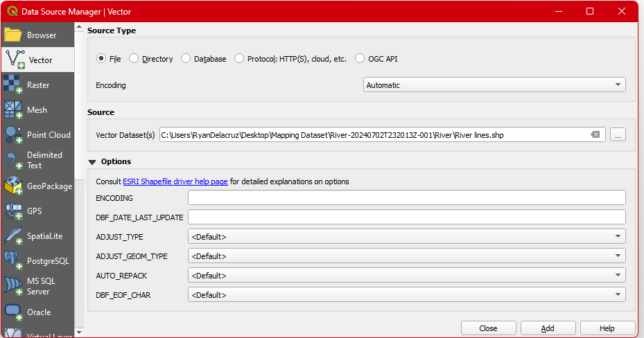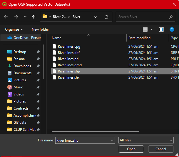 add vector icon. The same procedure will apply in loading the River lines. shp.